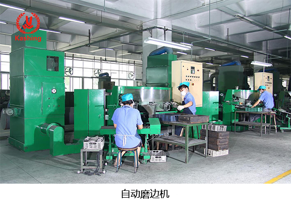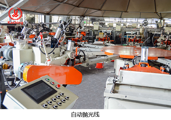 拋磨領(lǐng)域,公司從環(huán)保、安全生產(chǎn)、員工健康等方面出發(fā),投入了大量的資金打造拋磨車間的降噪、除塵及相關(guān)健康安全保護(hù)設(shè)備,配備了德國進(jìn)口KB磨邊機(jī)、臺灣進(jìn)口半自動拋光機(jī)產(chǎn)線、半自動R位和退肉機(jī)等先進(jìn)設(shè)備。2012年來公司還大力引進(jìn)了自動化拋光設(shè)備,開發(fā)使用各種工裝夾具及橫向拋磨等設(shè)備,有效降低了勞動強(qiáng)度及對人工的依賴,提升了生產(chǎn)效率及安全性。